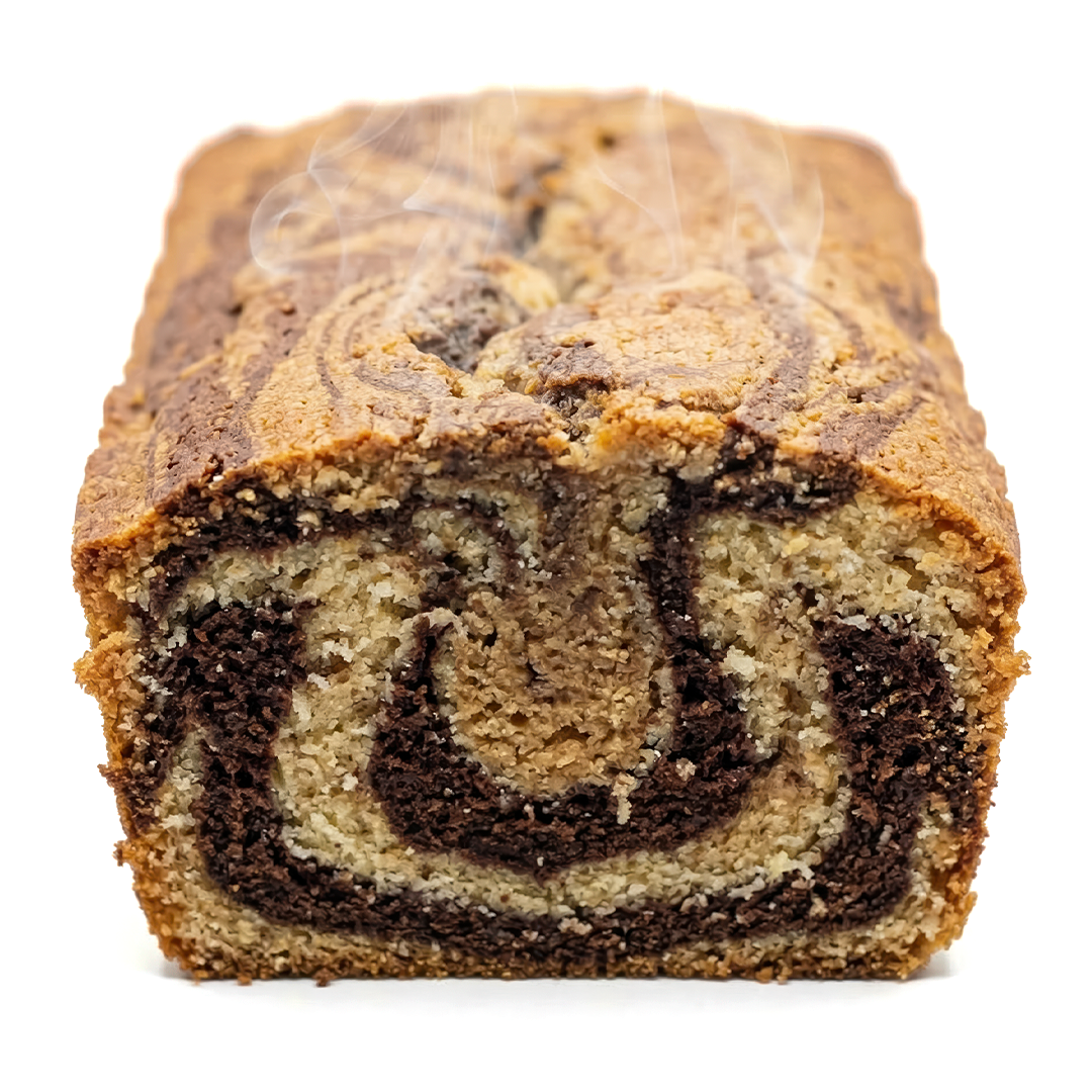 Nuestro Panqué Marmoleado es el acompañante perfecto para cualquier momento del día. Se caracteriza por su distintivo diseño de espirales, creado al combinar cuidadosamente una masa de naranja fresca con una de cocoa seleccionada, logrando que cada bocado tenga un balance perfecto de sabores.